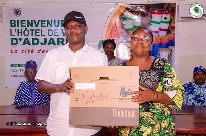 Des matériels informatiques mis à disposition du personnel de la mairie d’Adjarra. Lors de la cérémonie de remise, à laquelle ont assisté ses adjoints, les conseillers communaux, ainsi que la secrétaire exécutive, le Maire a supervisé personnellement la distribution de ce matériel informatique. Ce don comprend 20 ordinateurs portables et 3 unités centrales de bureau, tous de marque Lenovo. Les équipements ont été répartis entre le secrétariat exécutif, les directeurs techniques, les chefs de services, les secrétaires administratifs des arrondissements et le cabinet du Maire.