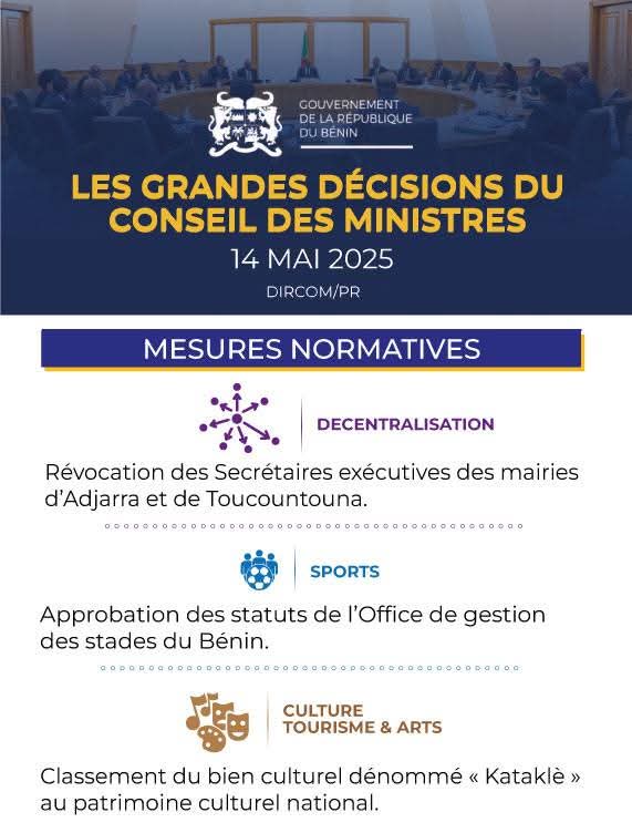 Bénin: voici les grandes décisions du conseil des ministres de ce mercredi 14 mai 2025