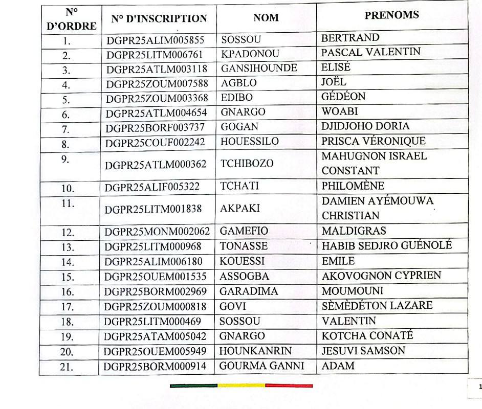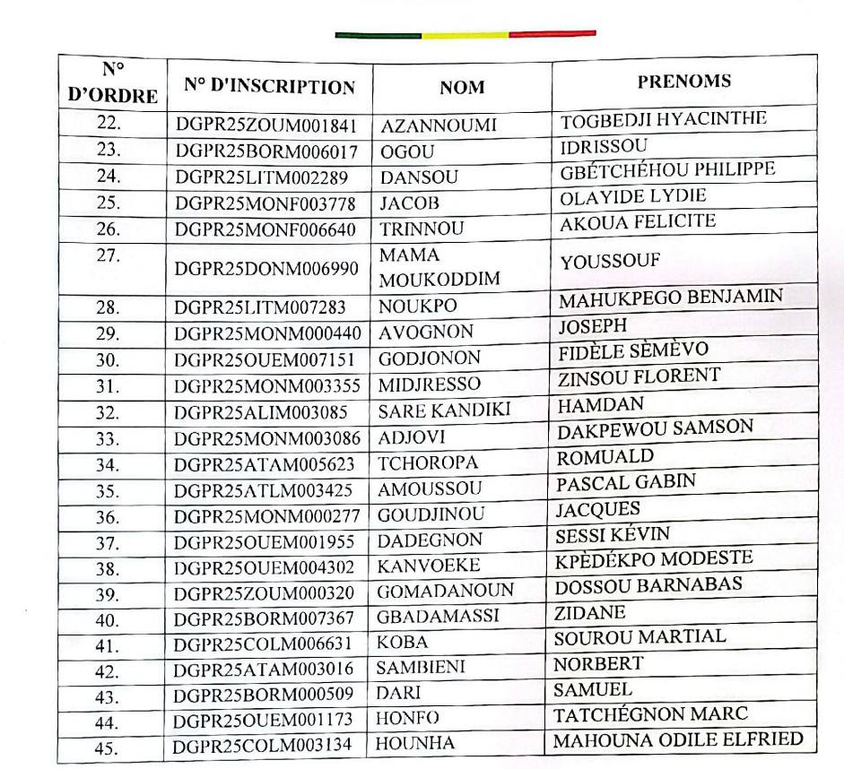 Dans le cadre du concours direct de recrutement de sept cent quinze (715) élèves agents de police au titre de l’année 2025, la Police républicaine a publié la liste supplémentaire des candidats admissibles.