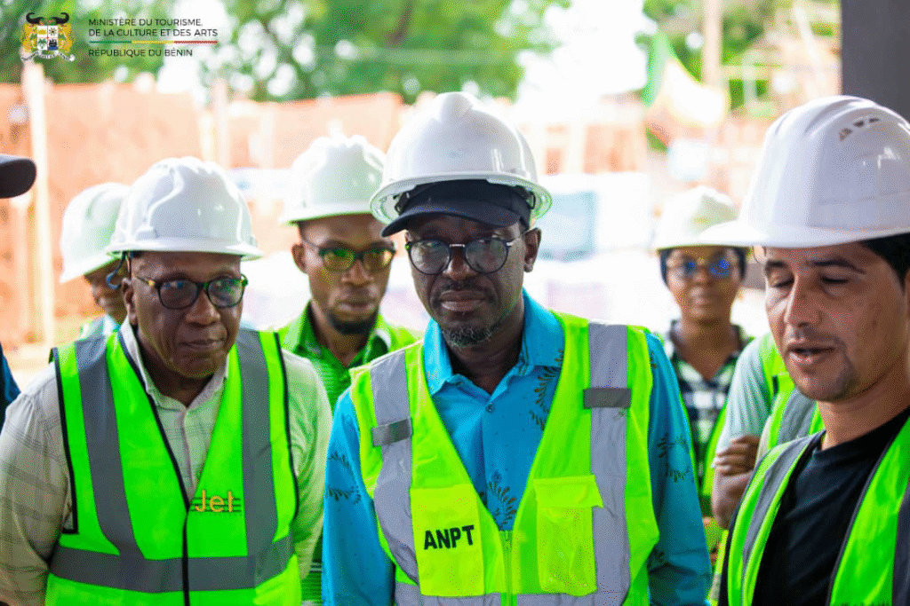 Le Ministre du Tourisme, de la Culture et des Arts, Jean-Michel Abimbola, s’est rendu ce jeudi 27 novembre 2025 sur le chantier du Musée international du Vodun (MIV), en construction à l’entrée de Porto-Novo. Accompagné du Chargé de mission du Chef de l’État, Alain Godonou, et de plusieurs cadres techniques, il a évalué l’état d’avancement de ce vaste projet culturel implanté sur plus d’un hectare.