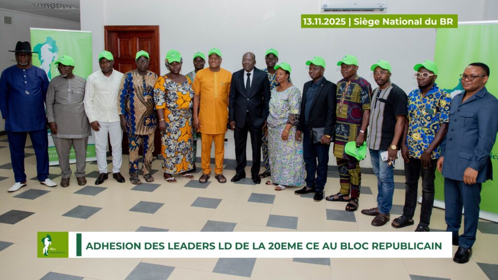 Une nouvelle vague d’adhésions vient renforcer les rangs du parti Bloc Républicain (BR) au Bénin. Ce jeudi 13 novembre 2025, plusieurs militants du parti Les Démocrates (LD) issus de la 20ᵉ circonscription électorale ont officiellement annoncé leur ralliement au Cheval blanc cabré, lors d’une cérémonie sobre mais solennelle tenue au siège national du parti à Cotonou.