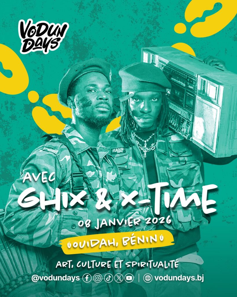 Les préparatifs des Vodun Days montent en puissance à Ouidah. Pour l’édition 2026, prévue du 09 au 11 janvier, les organisateurs dévoilent déjà les premiers noms qui animeront les grands concerts. Les artistes X-Time, Ghis (08 janvier) et Rico’s Campos( 09 janvier) sont officiellement annoncés déjà pour ces spectacles attendus par des milliers de festivaliers.